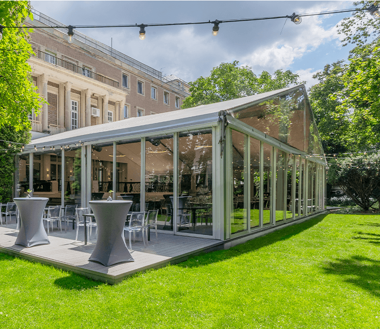 Wesele w otoczeniu natury to unikatowy potencjał naszej Oranżerii. Ta elegancka przestrzeń oczarowuje widokiem na przestronny, magicznie rozświetlony ogród.
